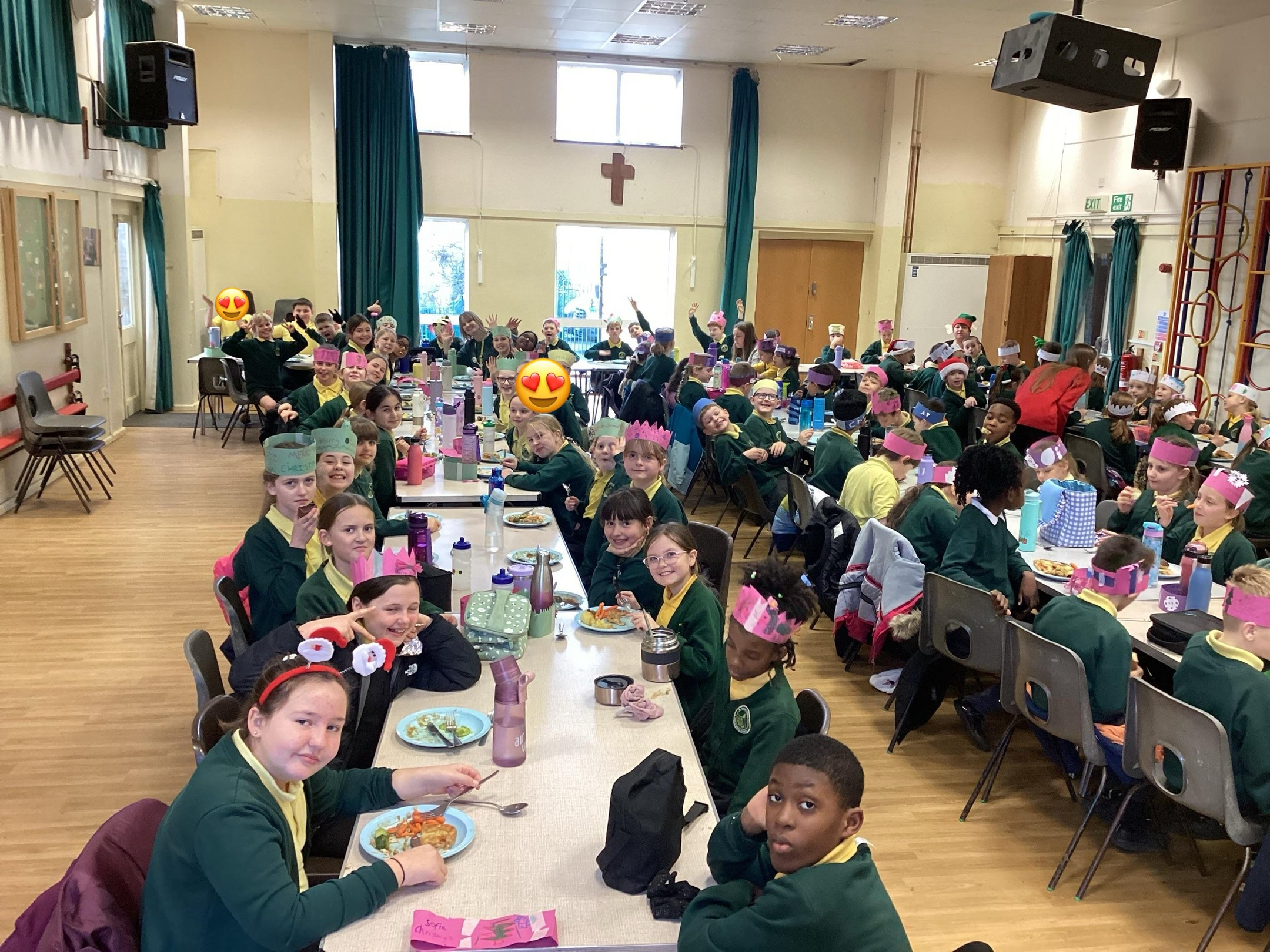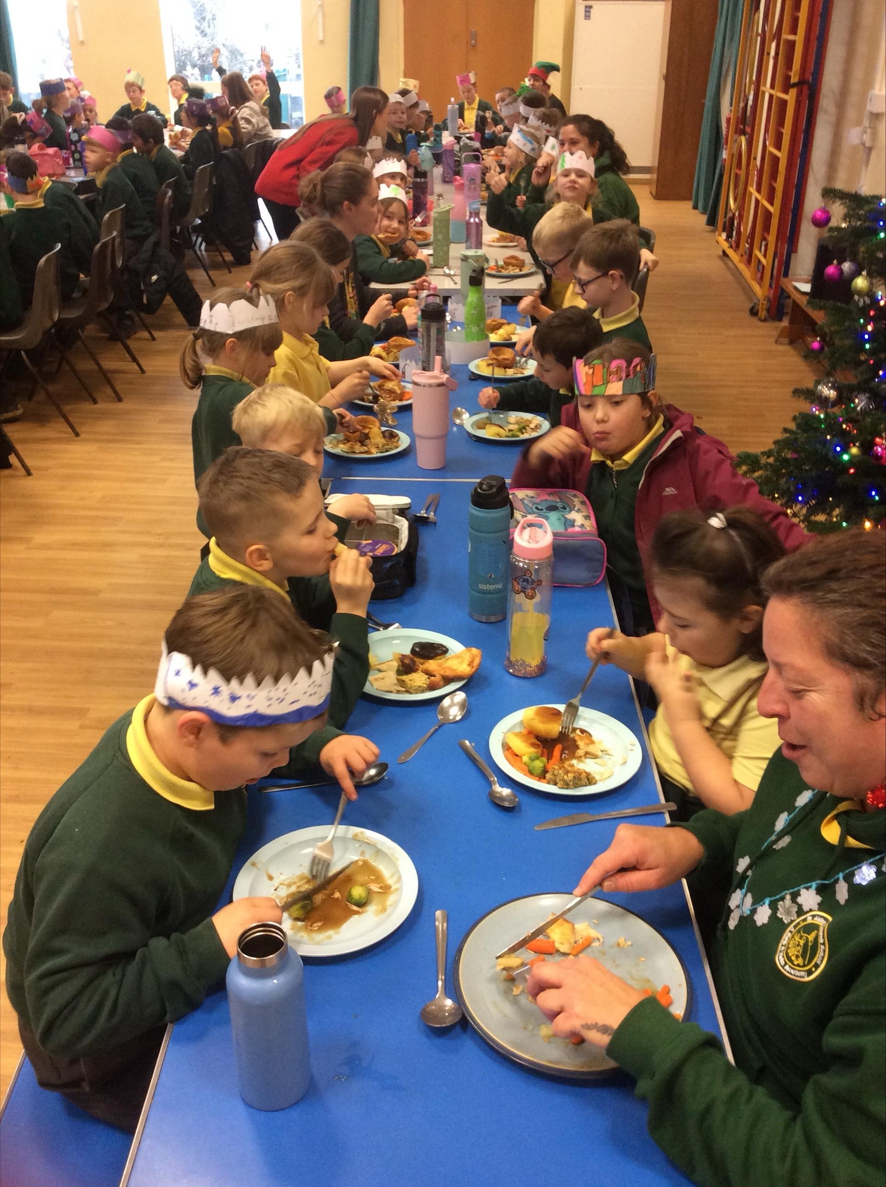 The whole school enjoyed a wonderful Christmas Dinner dressed in colourful Christmas Crowns. Enormous thanks Miss Allsop and Mrs Dingle for cooking such a yummy feast and all staff for being waiting staff. ๐๐ฅฌ ๐Belief๐